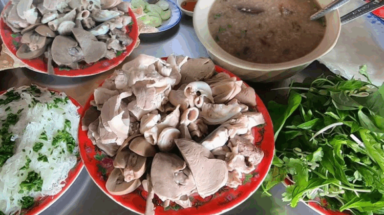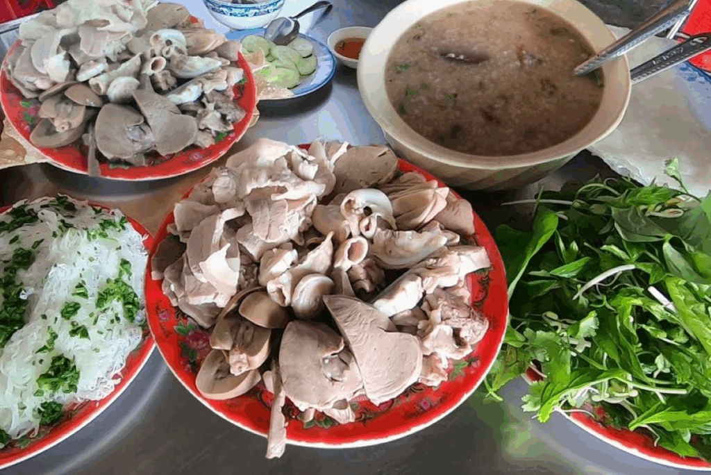 Một điểm đặc biệt nữa là món ăn thường được phục vụ kèm theo một chén cháo lòng nghi ngút khói. Vị ngọt từ nước luộc lòng, mùi thơm của tiêu, hành, và cái ấm nóng lan tỏa vào buổi sáng khiến bữa ăn trở nên trọn vẹn, bình dị mà đậm chất quê hương.