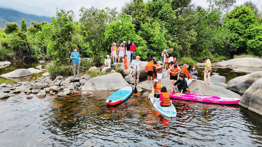• Tham gia các hoạt động ngoài trời: trekking quanh rừng, trò chơi tập thể, vẽ tranh, trồng cây.