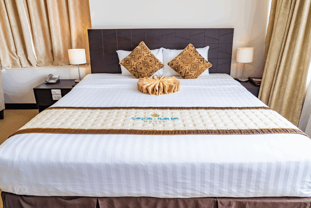 Với kiến trúc Tây Nguyên là sự giao thoa của kiến trúc hiện đại và gam màu văn hóa địa phương độc lập, nội thất lưu căn đầy đủ tiện nghi trong 131 phòng ngủ được kết hợp tinh tế, trau chuốt đến từng chi tiết. Bên cạnh đó, nội thất lưu trữ đầy đủ tiện ích tạo nên không gian hoàn hảo cho bất kỳ loại phòng nào mà Quý khách lựa chọn, chắc chắn sẽ mang lại những trải nghiệm khó quên